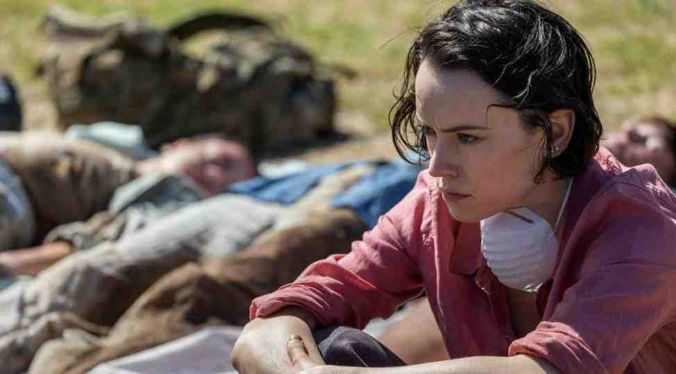 Ava, played with restrained intensity by Daisy Ridley, volunteers for a government-organized Body Retrieval Unit. Officially, she’s there to help clear houses and towns of the dead. Unofficially and this is the emotional engine of the film she’s searching for her husband, Mitch, who happened to be in Tasmania on business when the weapon detonated. The work is gruesome and methodical: entering abandoned homes, lifting decomposing bodies, confronting death in its most unceremonious state. Alongside her is Clay (Brenton Thwaites), another volunteer who slowly becomes less of a coworker and more of a companion, the two bonding almost by necessity as they move room to room, corpse to corpse. You can feel how trauma accelerates intimacy here not romance, exactly, but shared endurance.